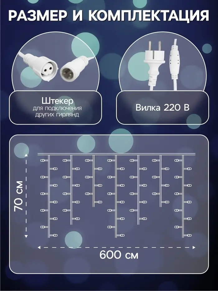 Конструкция рассчитана на эксплуатацию на улице: прочная ПВХ-нить и защита IP44 обеспечивают стабильную. Постоянный режим свечения делает подсветку спокойной и комфортной для глаз, сохраняя аккуратный внешний вид в течение всего вечера.