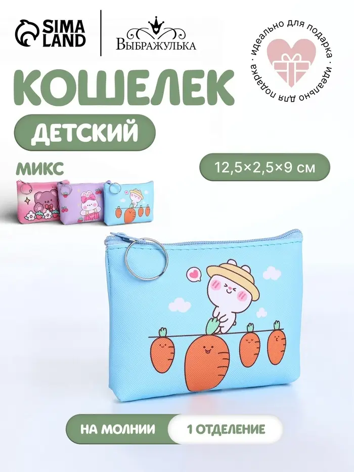 Кошелёк детский «Милые зверята», монетница, на молнии, МИКС