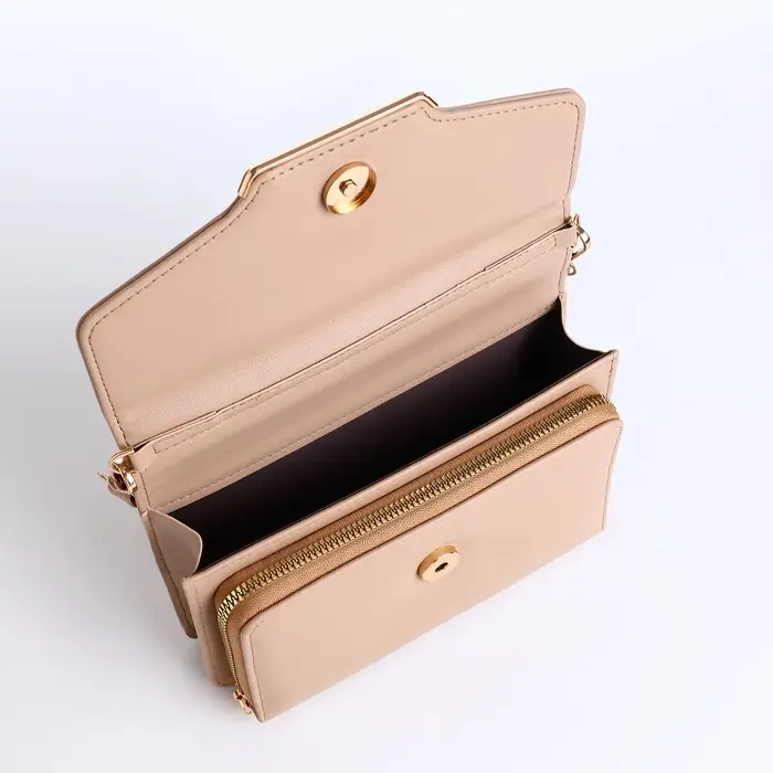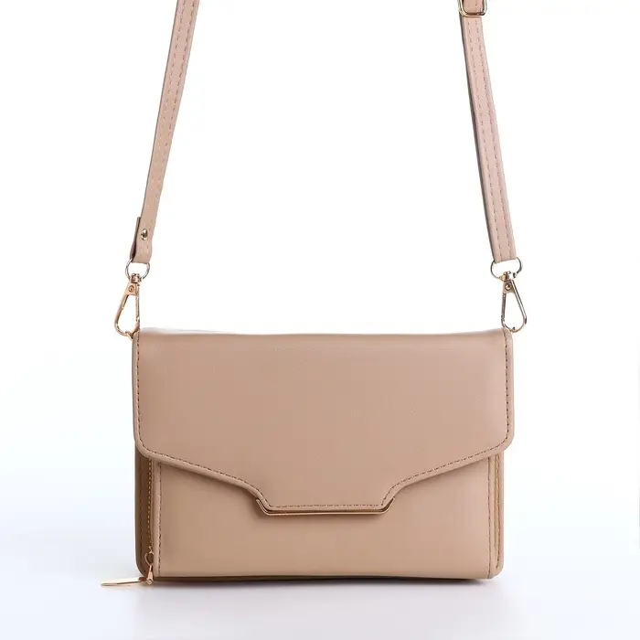 Сумка женская мессенджер на магнитах, 20×4×13 см, бежевая