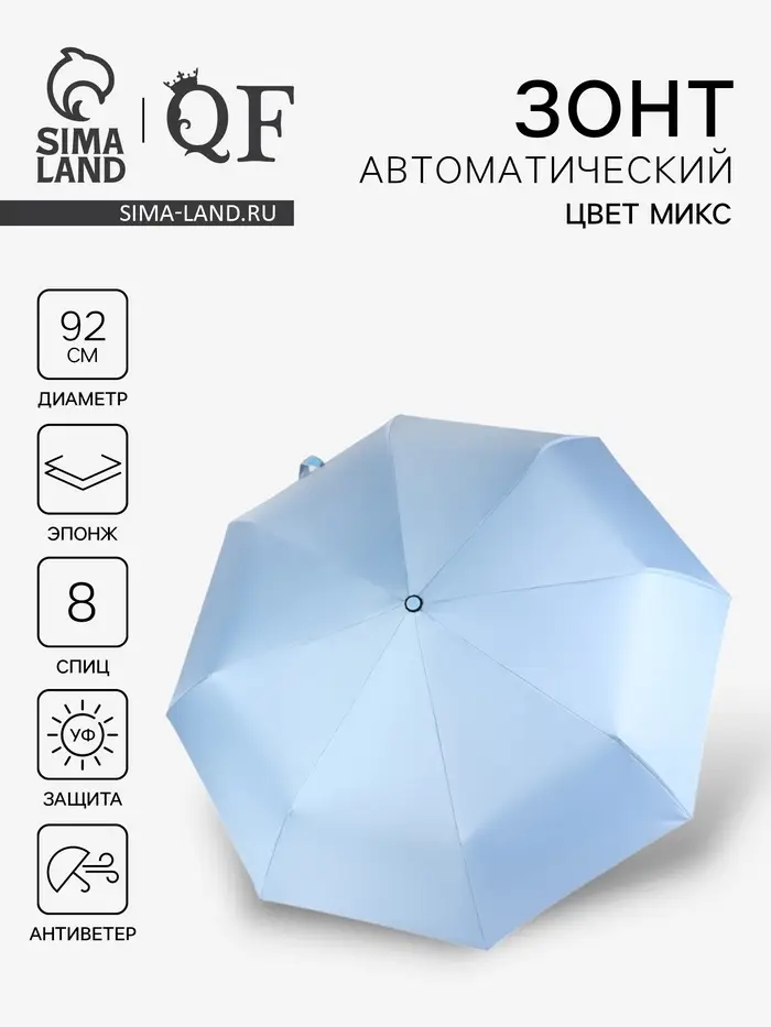 Зонт автоматический «Однотонный», 3 сложения, 8 спиц, R=46/56 см, d=92 см, МИКС