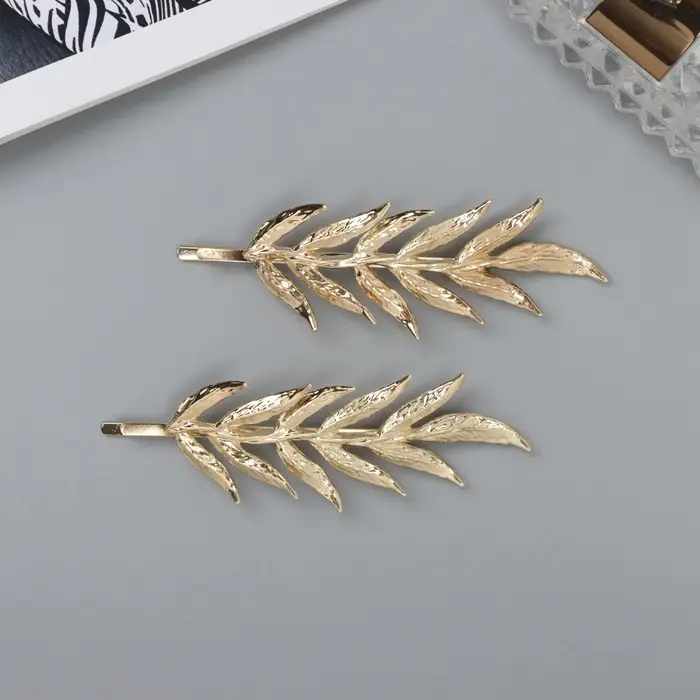 - Золотистый блеск: металлический материал заколок обладает утонченным золотистым цветом, который легко сочетать с любым гардеробом. Это выбор тех, кто ценит скромную элегантность.