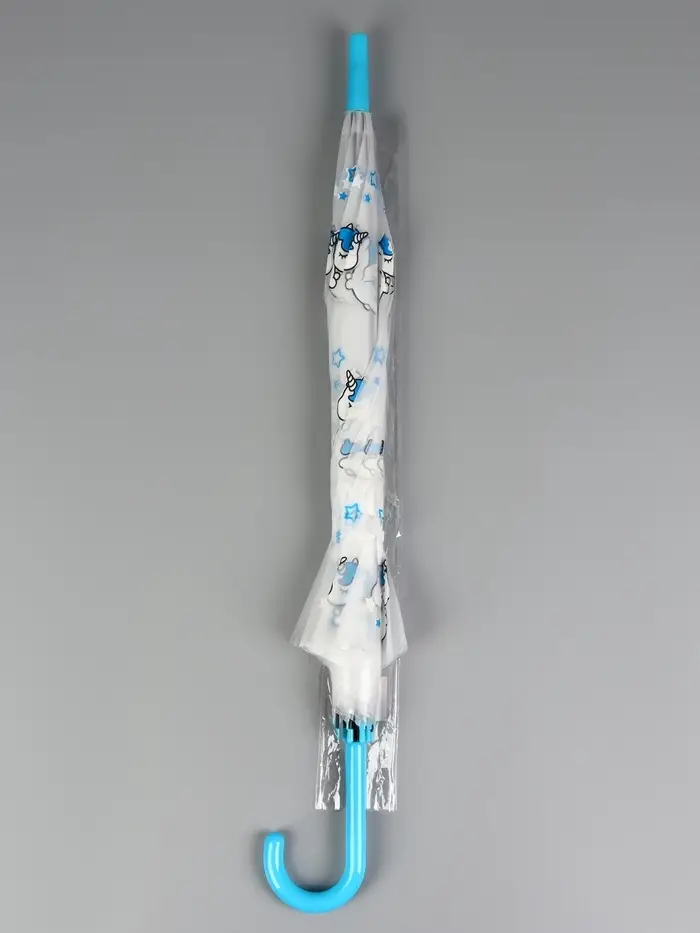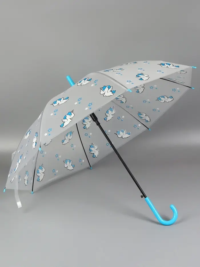 Зонт - трость детский «Единороги», полуавтоматический, 8 спиц, R=45/54 см, d=90 см, прозрачный, белый, голубой