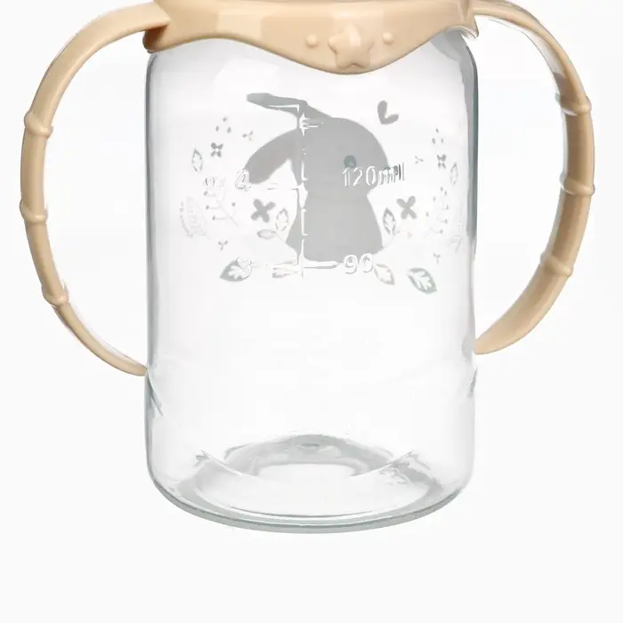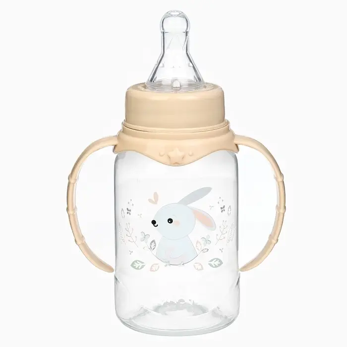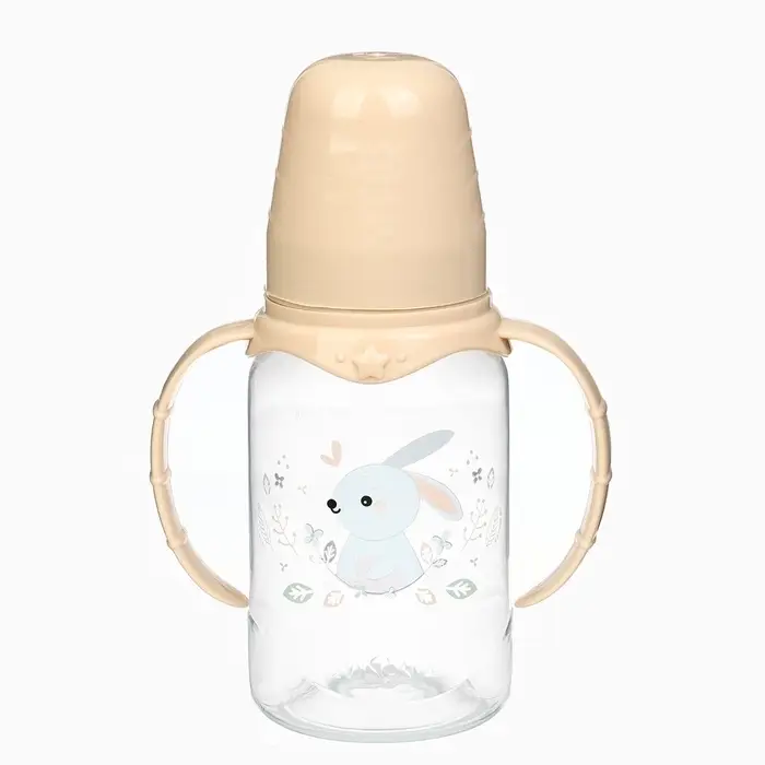 Бутылочка для кормления Крошка Я «Зайчик» от 0 мес., 150 мл, цилиндр, с ручками, бежевый