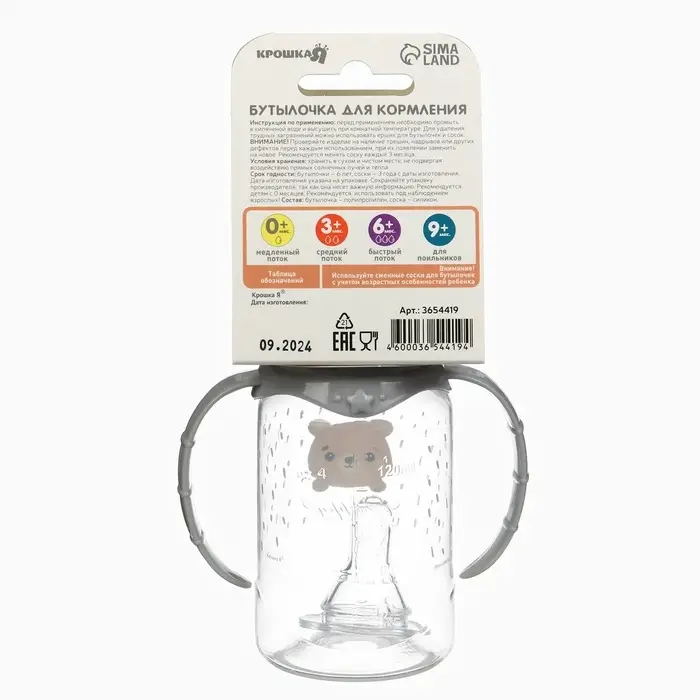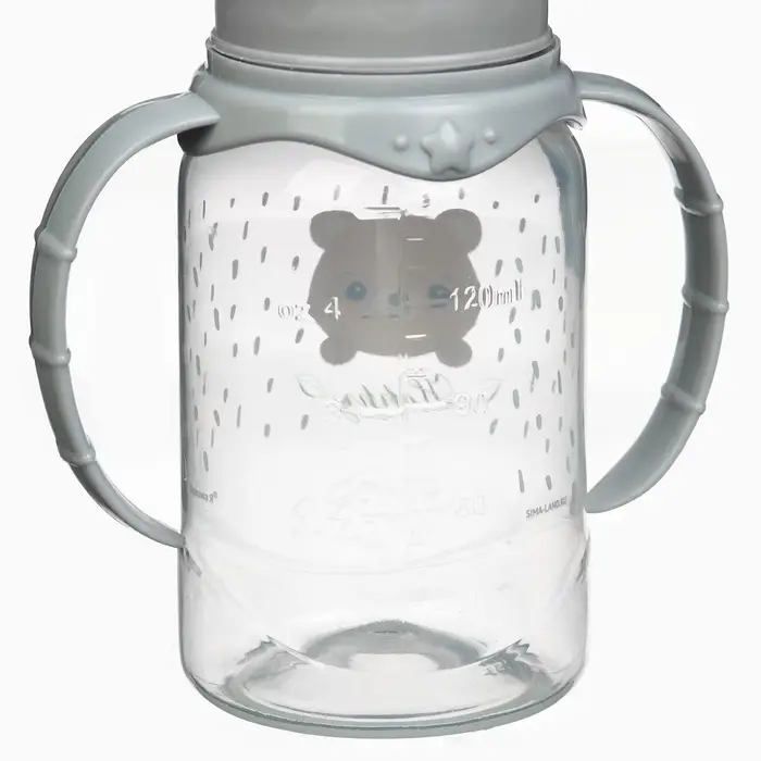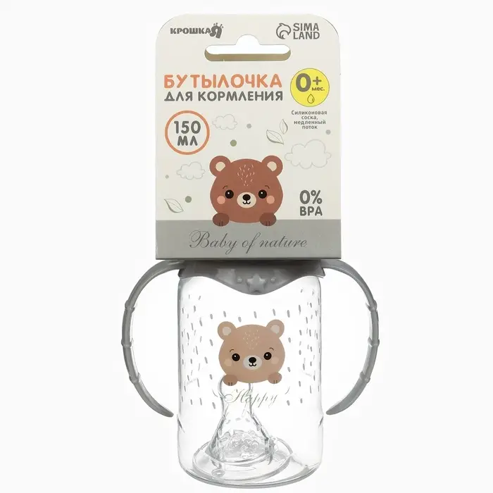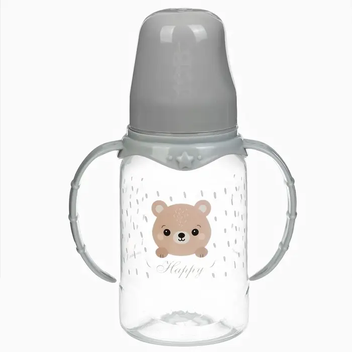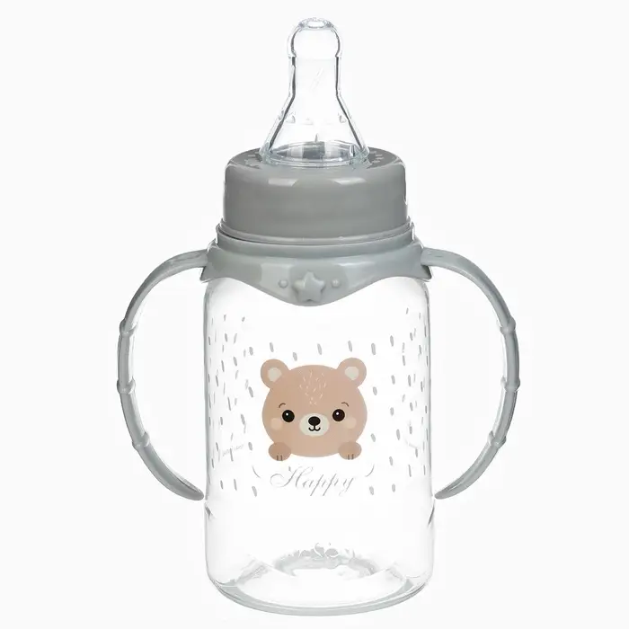 Бутылочка для кормления Крошка Я «Happy» с ручками, от 0 мес., 150 мл, цилиндр, серый