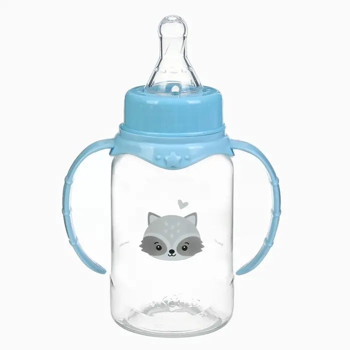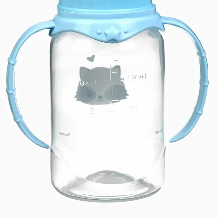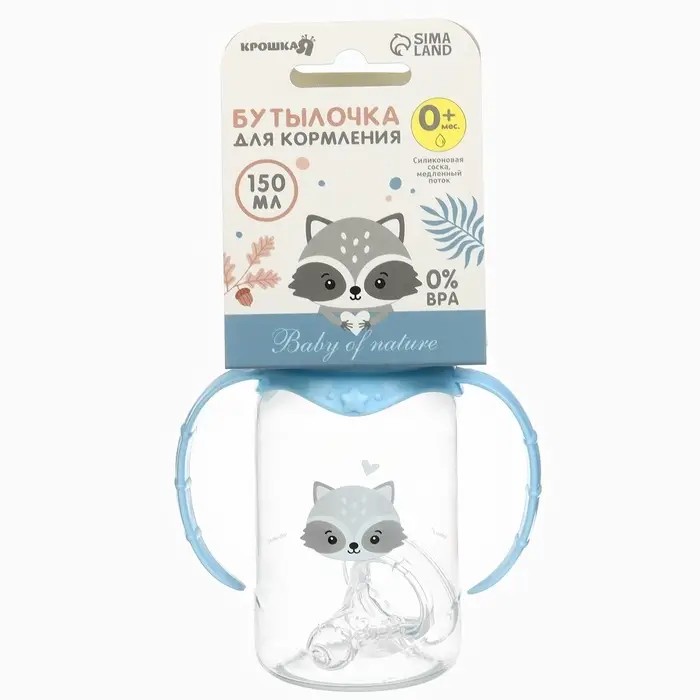Бутылочка для кормления Крошка Я «Малыш енот» от 0 мес., 150 мл, цилиндр, с ручками, голубая
