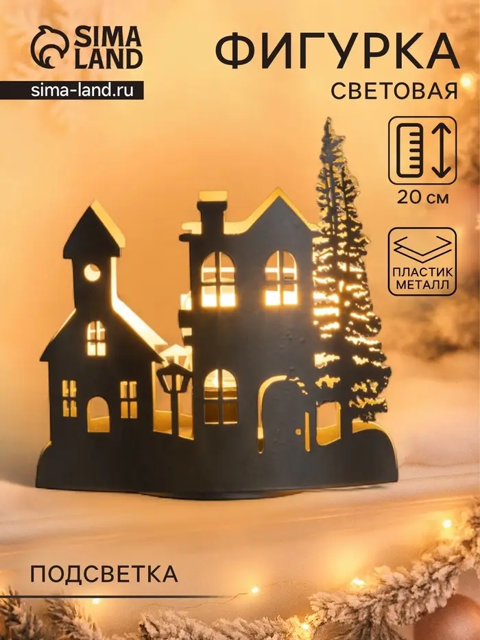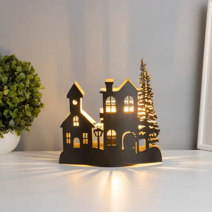 Фигурка светящаяся RISALUX «Вечерний город», LED-ночник, 3×ААА, чёрный, 10.8×19.5×20 см