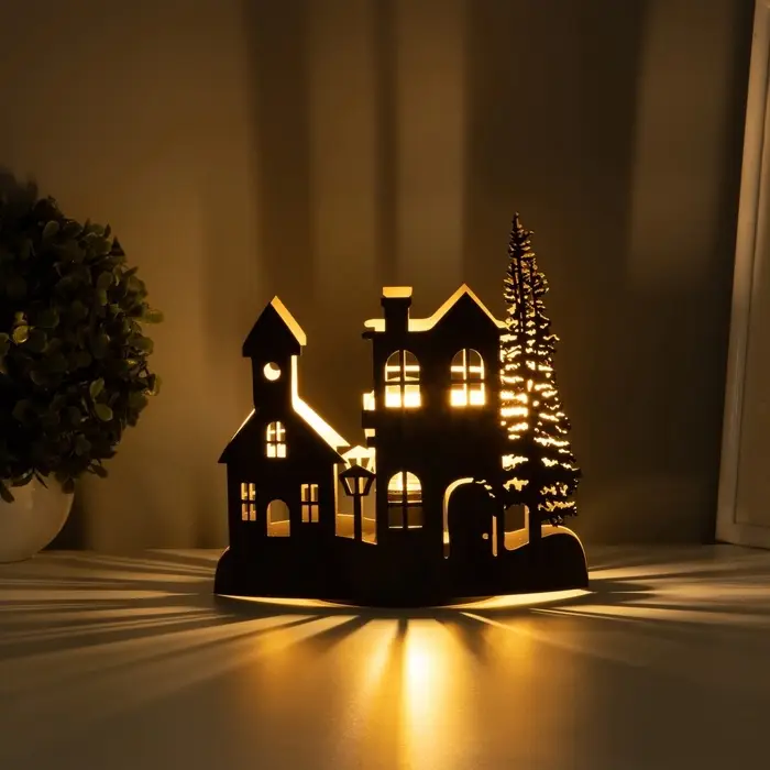 Этот светящийся ночник создаёт в комнате атмосферу уюта и спокойствия. Мягкий жёлтый свет, проходящий сквозь очертания миниатюрного городского пейзажа, наполнит ваш вечер теплом. Установите его на прикроватной тумбочке или рабочем столе — он станет вашим личным источником мягкого, расслабляющего освещения.