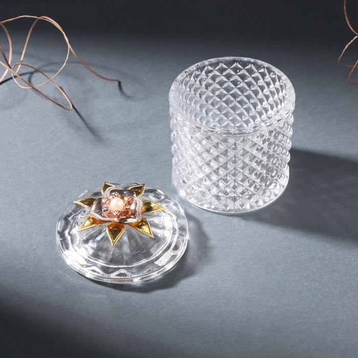 Шкатулка стекло "Цветок - острые лепестки" золото 6х6х8 см