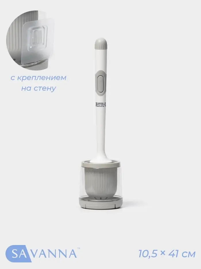 Ёршик для унитаза SAVANNA, настенный, силиконовый, с ёмкостью для моющего средства, 10.5×10.5×41 см, белый