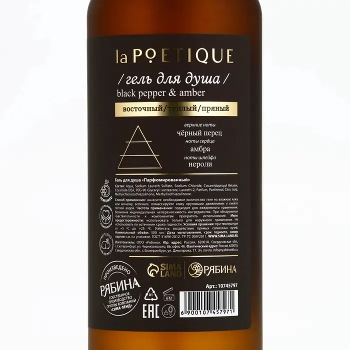 Гель для душа парфюмированный, аромат Black pepper, 500 мл, laPOETIQUE