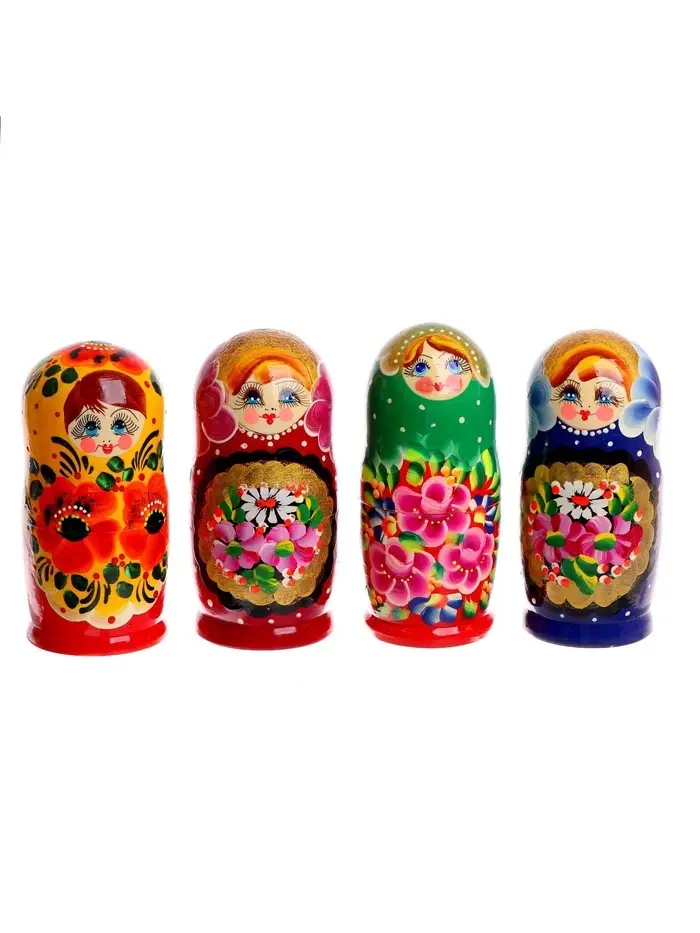 Расписная матрёшка — это традиционная русская игрушка, выполненная из натурального дерева. В набор входят 5 кукол, каждая из которых аккуратно расписана. Эти матрёшки станут прекрасным подарком и сувениром, который понравится как детям, так и взрослым.