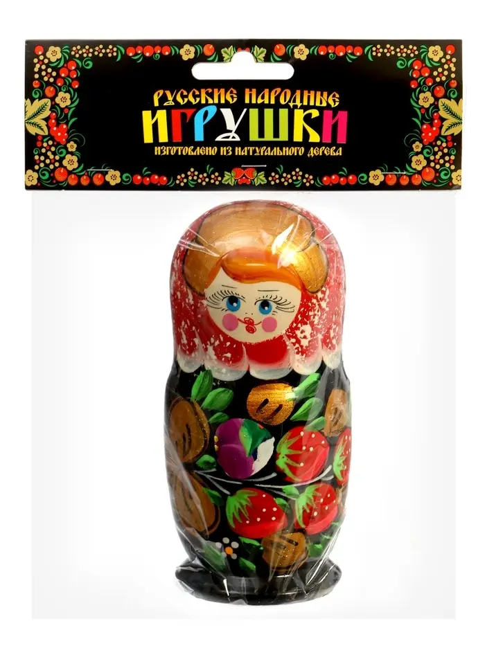 Матрёшка дерево «Земляничка», чёрный платок, 5 кукольная, 18 см