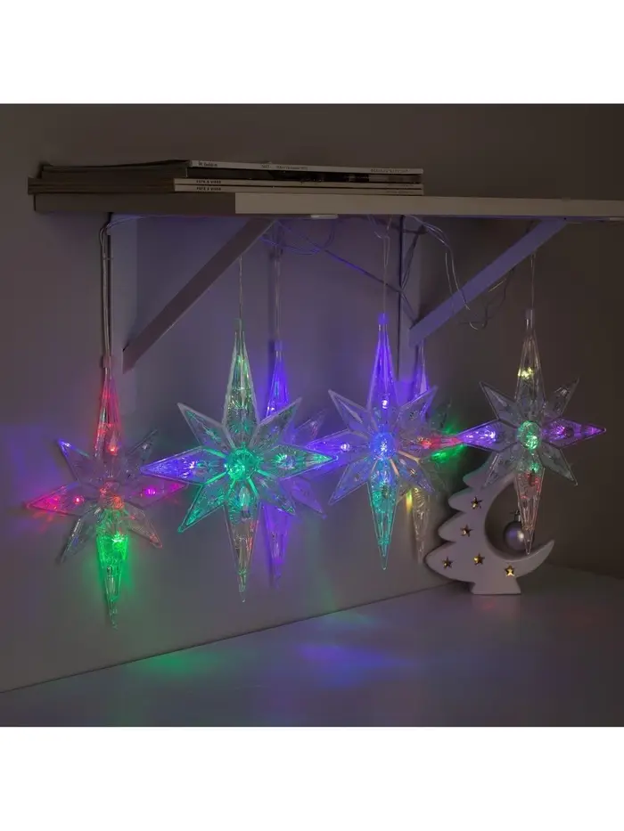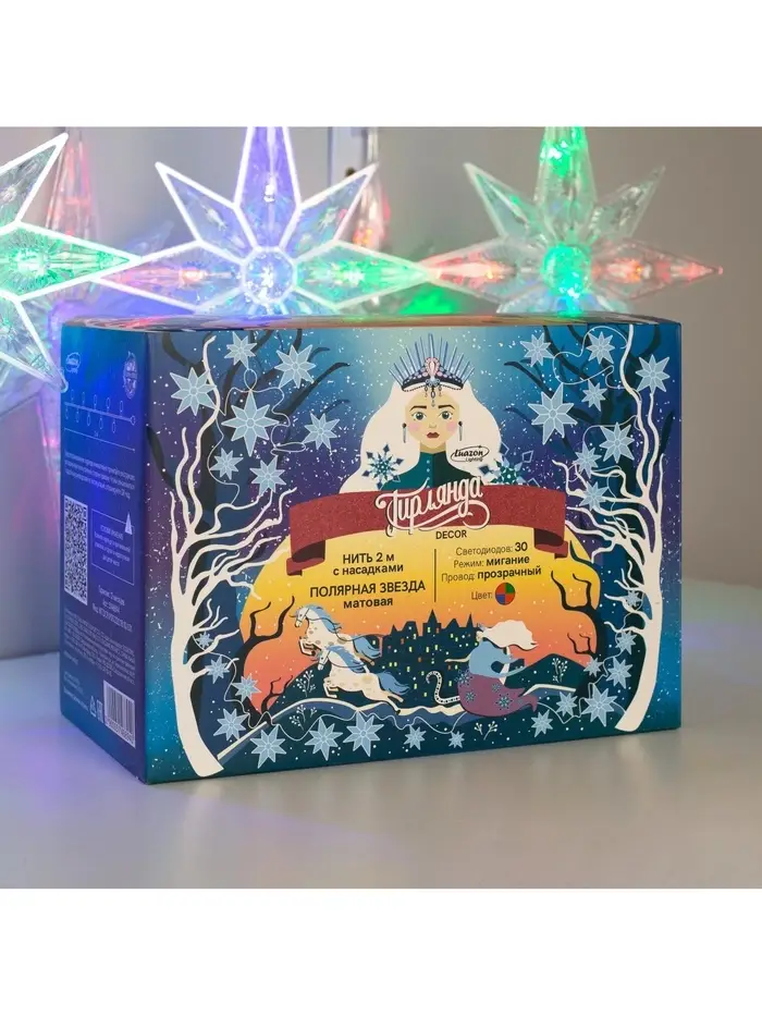 Гирлянда «Нить» 2 м с насадками «Полярная звезда», IP20, прозрачная нить, 30 LED, свечение мульти (RG/RB), мигание, 220 В