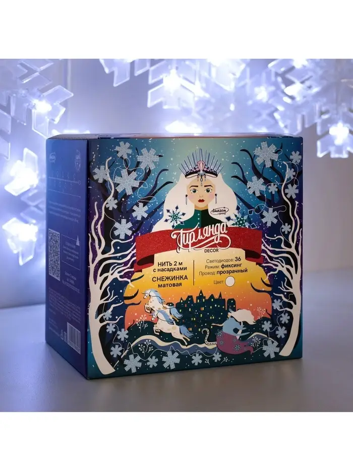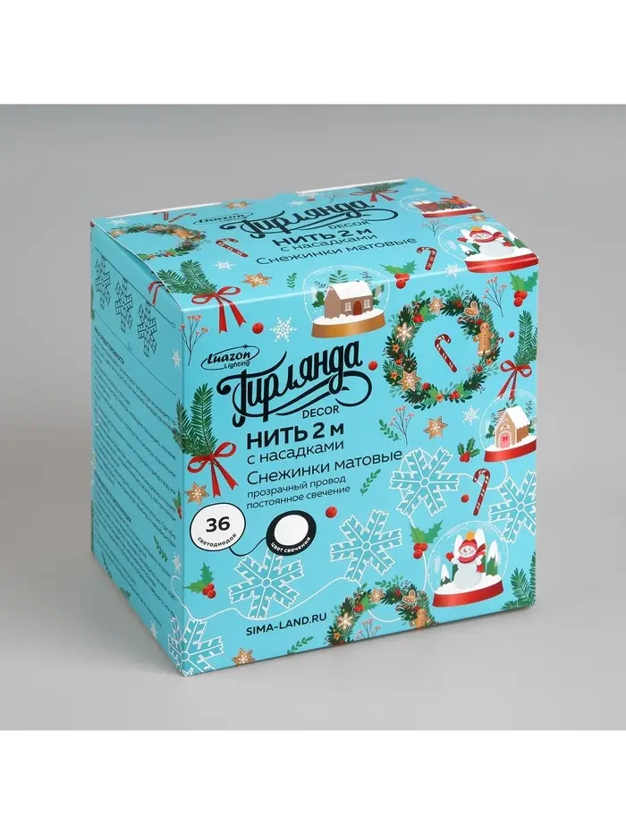 Гирлянда «Нить» 2 м с насадками «Снежинка матовая», IP20, прозрачная нить, 36 LED, свечение белое, 220 В