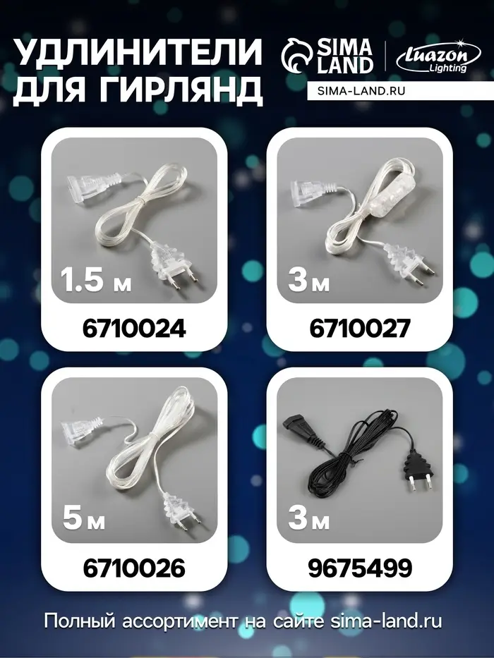 Гирлянда «Нить» 5 м с насадками «Снежинки малые», IP20, прозрачная нить, 20 LED, свечение мульти (RG/RB), мигание, 220 В