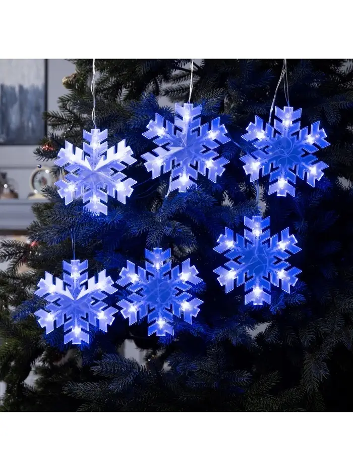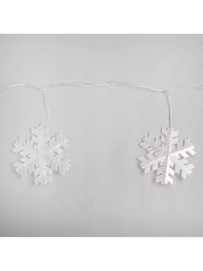 Гирлянда «Нить» 5 м с насадками «Снежинки малые», IP20, прозрачная нить, 20 LED, свечение мульти (RG/RB), мигание, 220 В