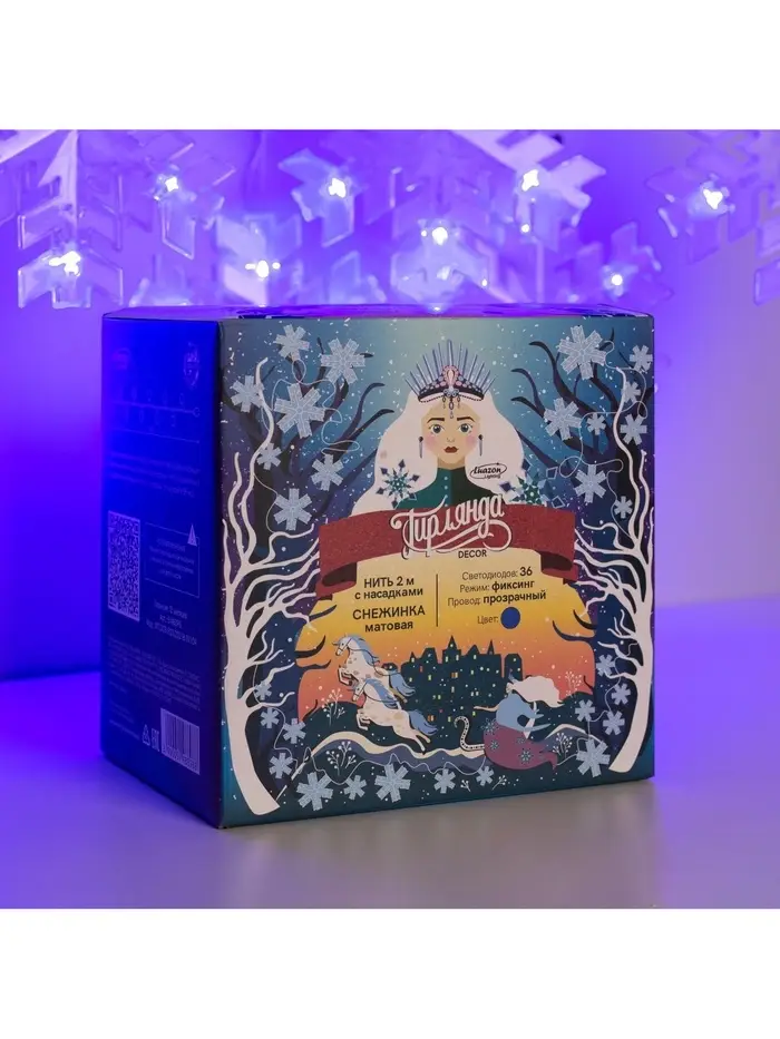 Гирлянда «Нить» 2 м с насадками «Снежинка матовая», IP20, прозрачная нить, 36 LED, свечение синее, 220 В