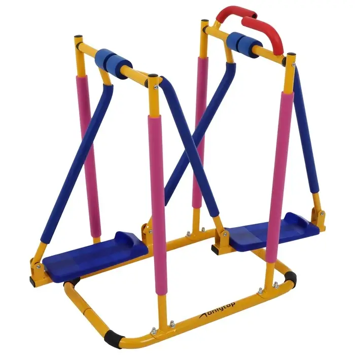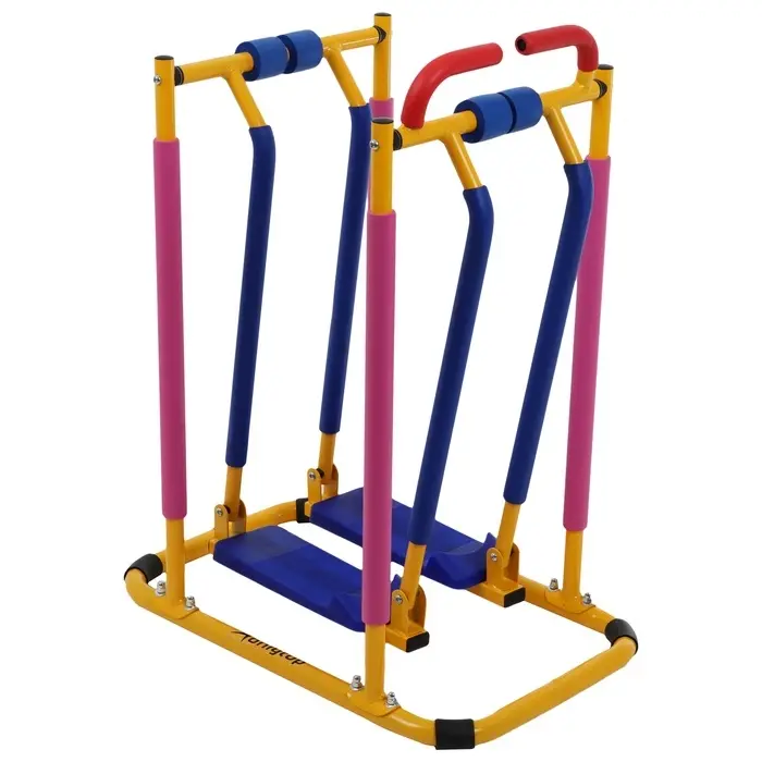 Тренажер предназначен для детей от 4 до 8 лет. Максимальный вес пользователя: 50 кг. Тренажер способствует укреплению мышц ног, развитию чувства равновесия, координации движений и общей моторики. Работа на детском тренажере осуществляется путем имитации бега на лыжах длительностью - от 3 до 5 минут, через каждую минуту детям предлагается отдых в течение 30 - 40 секунд.