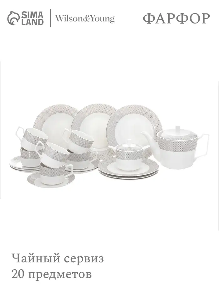 Чайный сервиз WY Eternal, 20 предметов, чайник 1 л, 6 кружек 250 мл, 6 блюдец, 6 тарелок пирожковых, фарфор