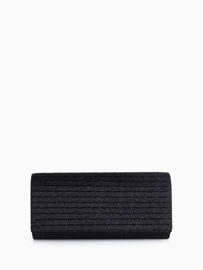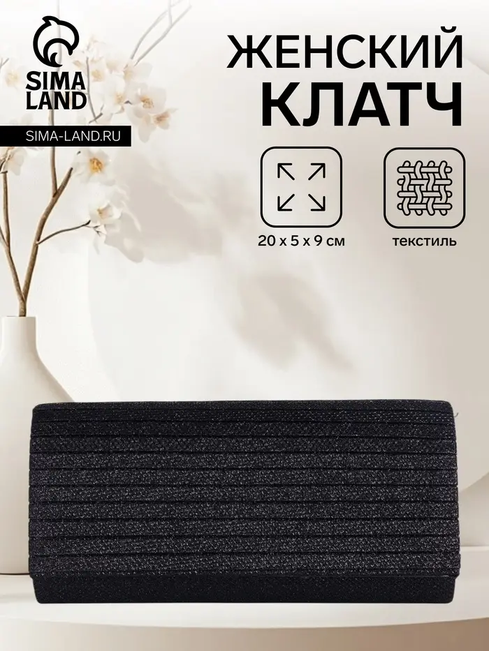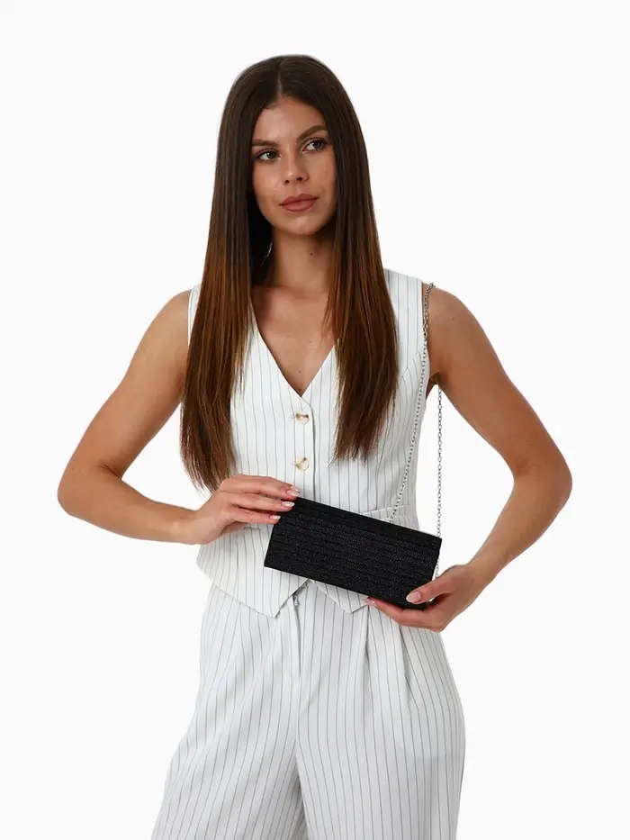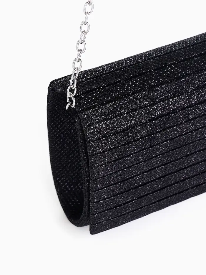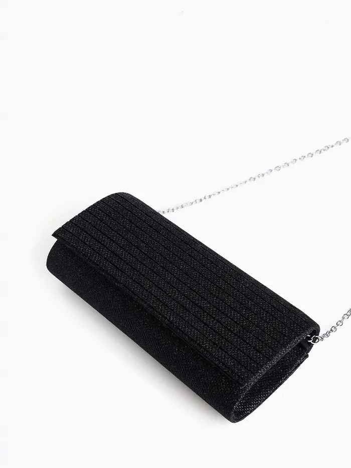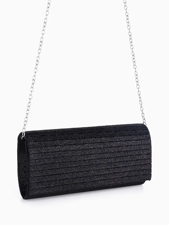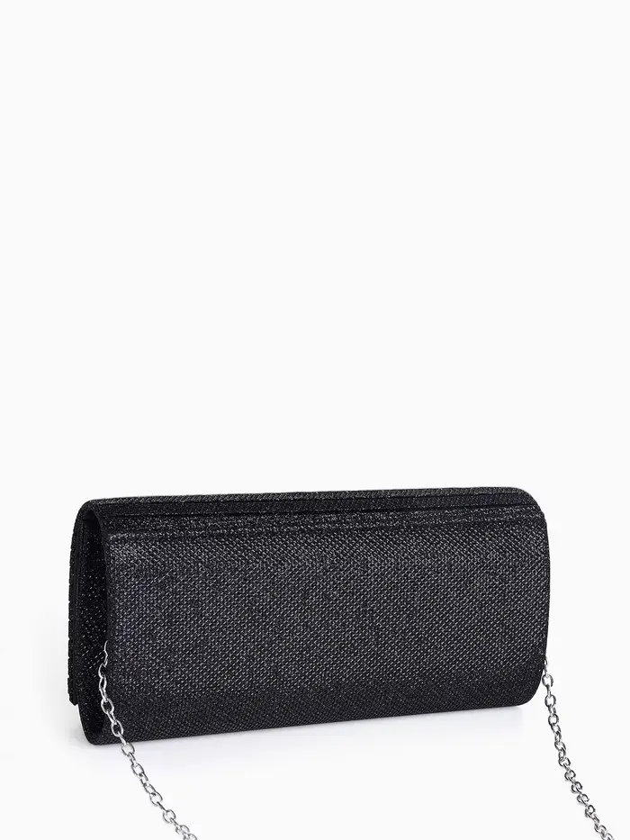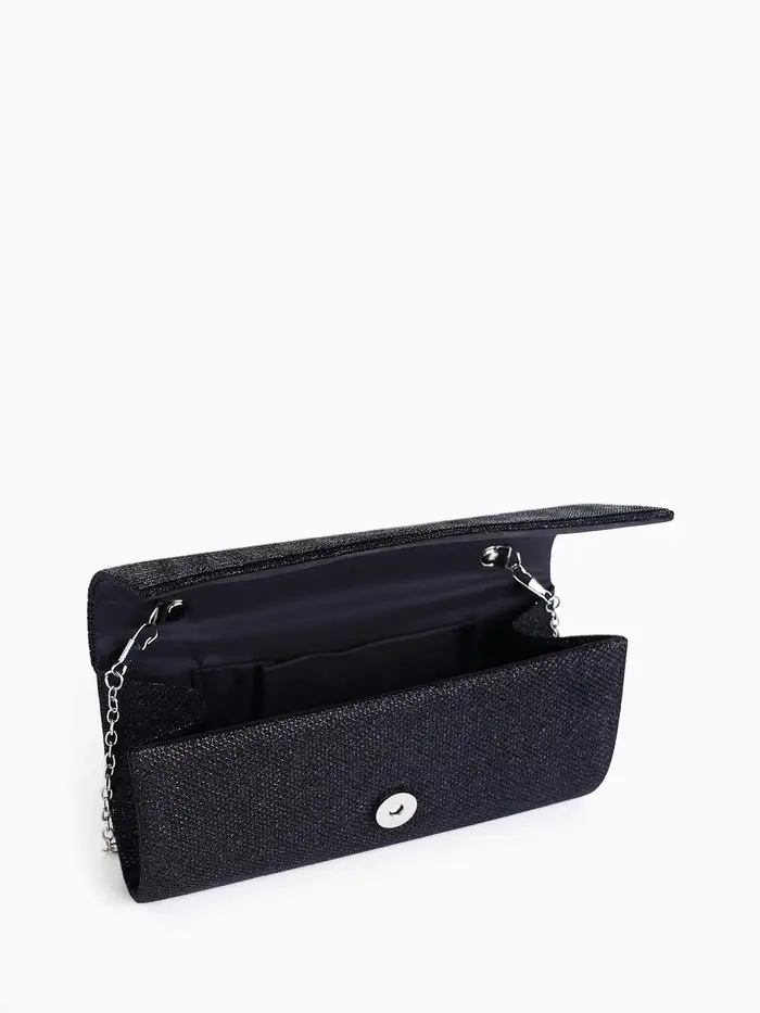 Сумка-клатч на магните, на серебристой цепочке, чёрная
