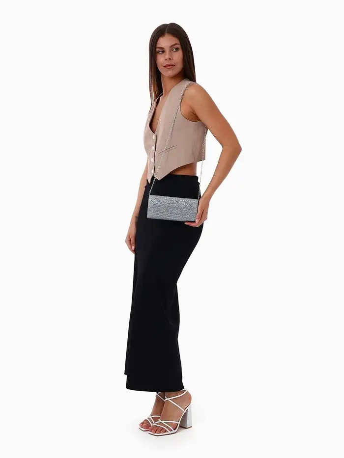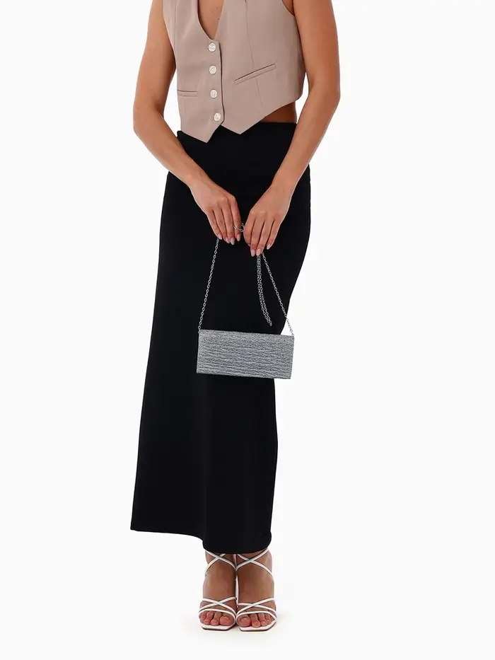- Современная отделка: Созданная из текстиля с металлическим блеском, сумочка обладает изысканным и универсальным дизайном, который подойдёт как для вечернего выхода, так и для вечеринок.