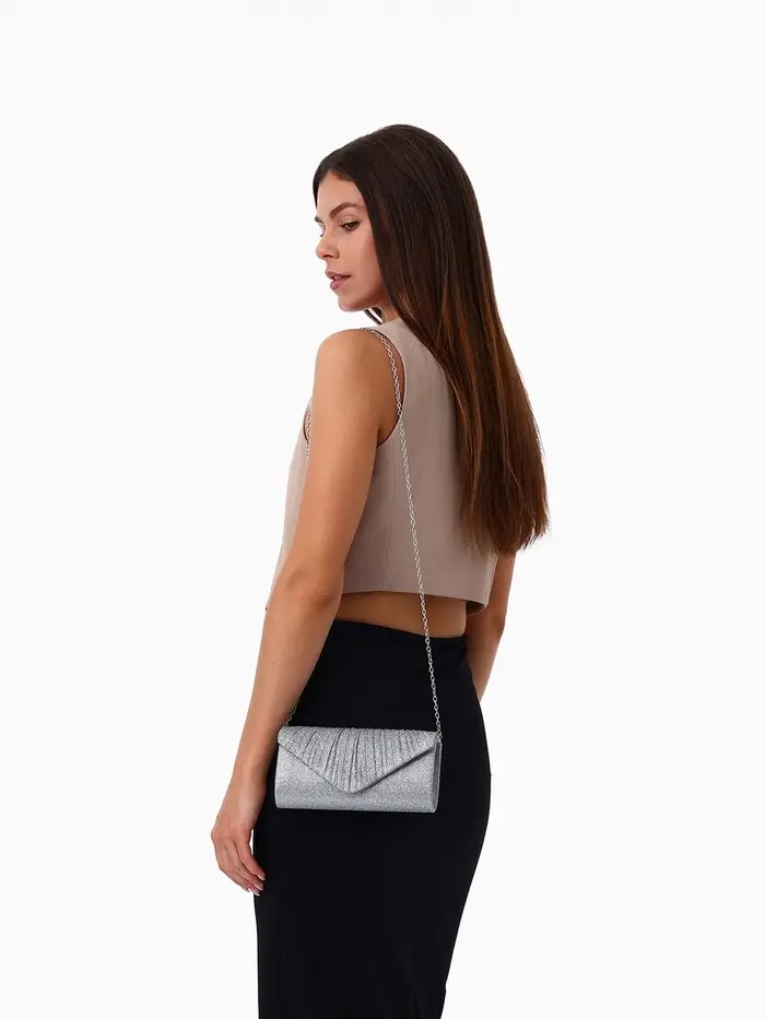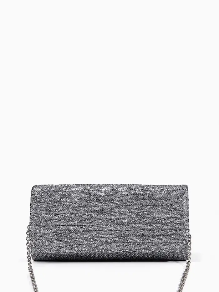 Сумка-клатч вечерняя на магните, на серебристой цепочке, блестящая, серебристая