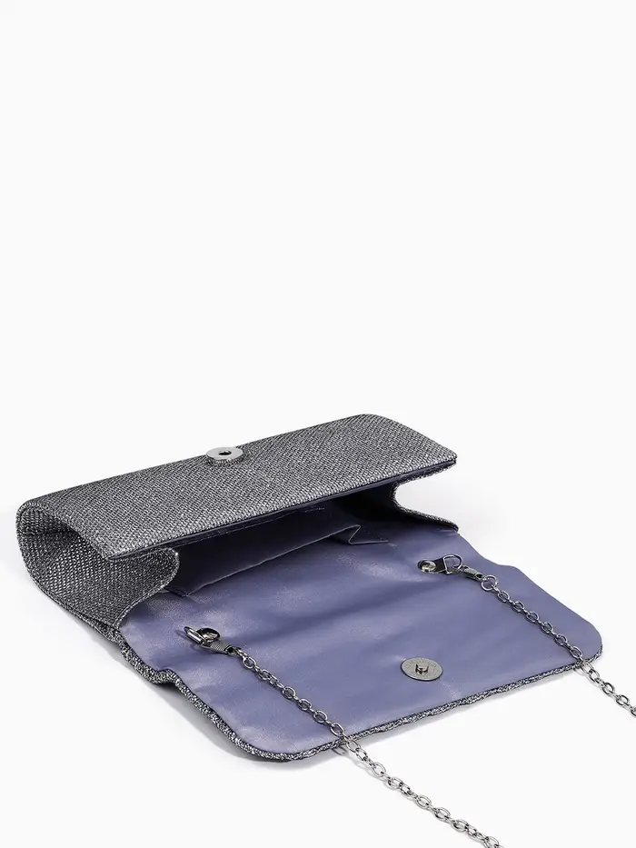 Сумка-клатч на магните, длинная цепь, цвет серебристый