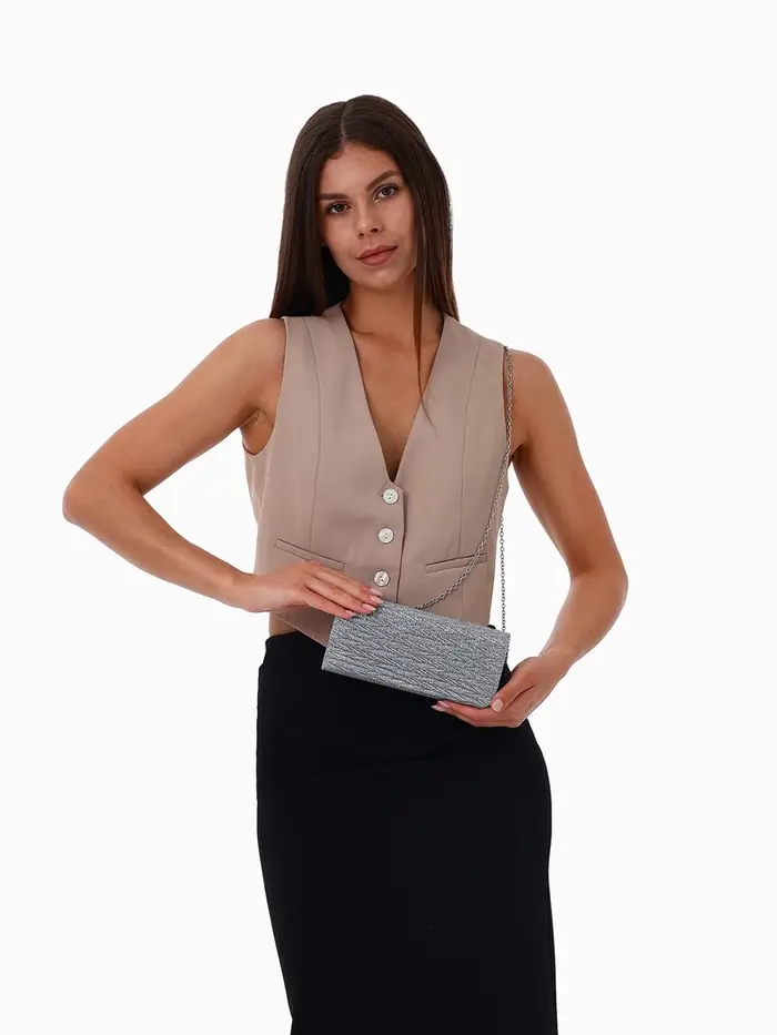 Сумка-клатч вечерняя на магните, на серебристой цепочке, светло-серая