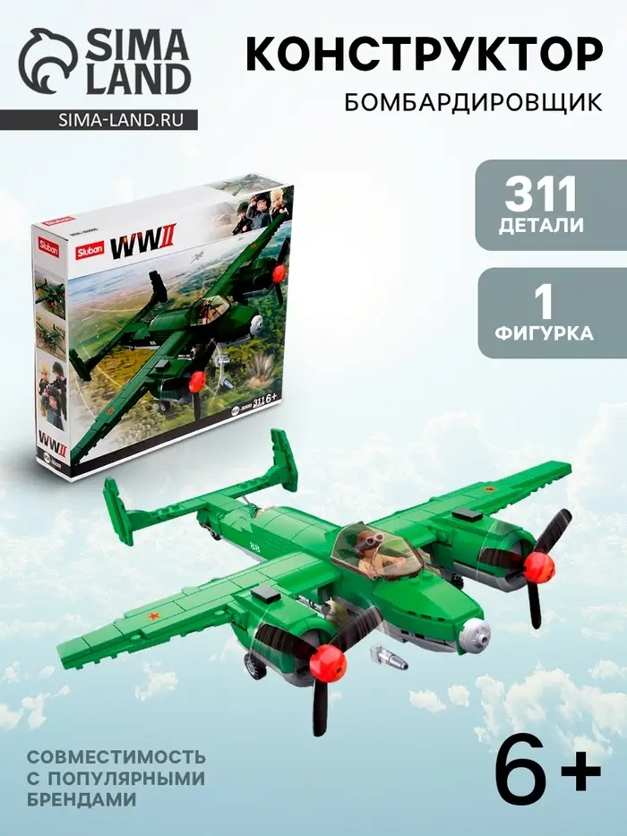 Конструктор Армия ВОВ Sluban «Бомбардировщик», 311 деталей
