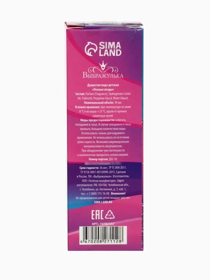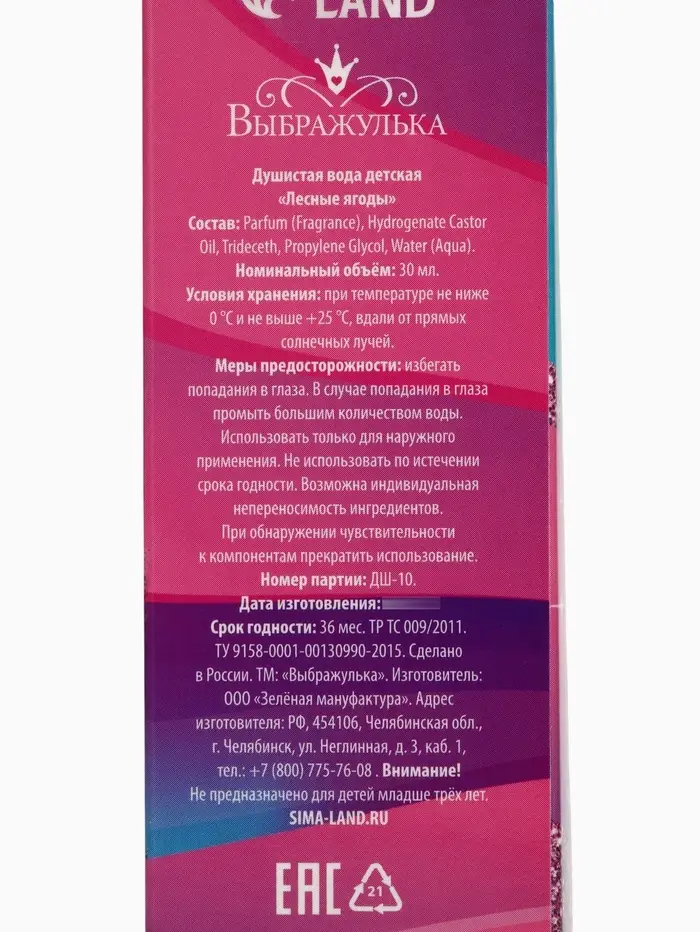 Детская душистая вода подходит в качестве первого парфюма. Аромат сладкий, лёгкий и нежный, не слишком насыщенный — как раз для маленькой леди.