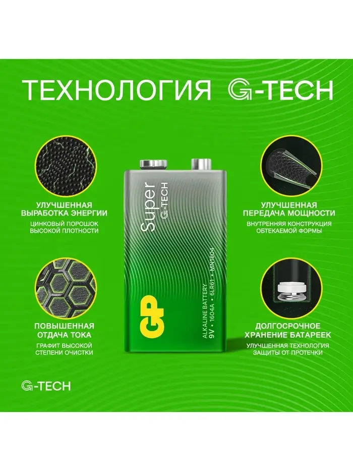 Новая линейка батареек GP Super Alkaline с технологией G-TECH, которая обеспечивает до 50%* больше мощности, позволяя вам наслаждаться использованием ваших устройств без перерывов. Технология G-TECH гарантирует длительное время службы ваших устройств. Благодаря использованию графита высокой чистоты и высококачественного порошка цинка S, батарейки обеспечивают высокую мощность и стабильное напряжение на протяжении продолжительного времени. Запатентованная система предотвращения протечек обеспечивает безопасность использования и защиту ваших устройств. Эти щелочные батарейки выделяются соотношением цены и качества и идеально подходят для повседневных устройств, таких как часы, пульты дистанционного управления и другие. Выберите батарейки GP Super Alkaline с технологией G-TECH для надежной работы ваших устройств.