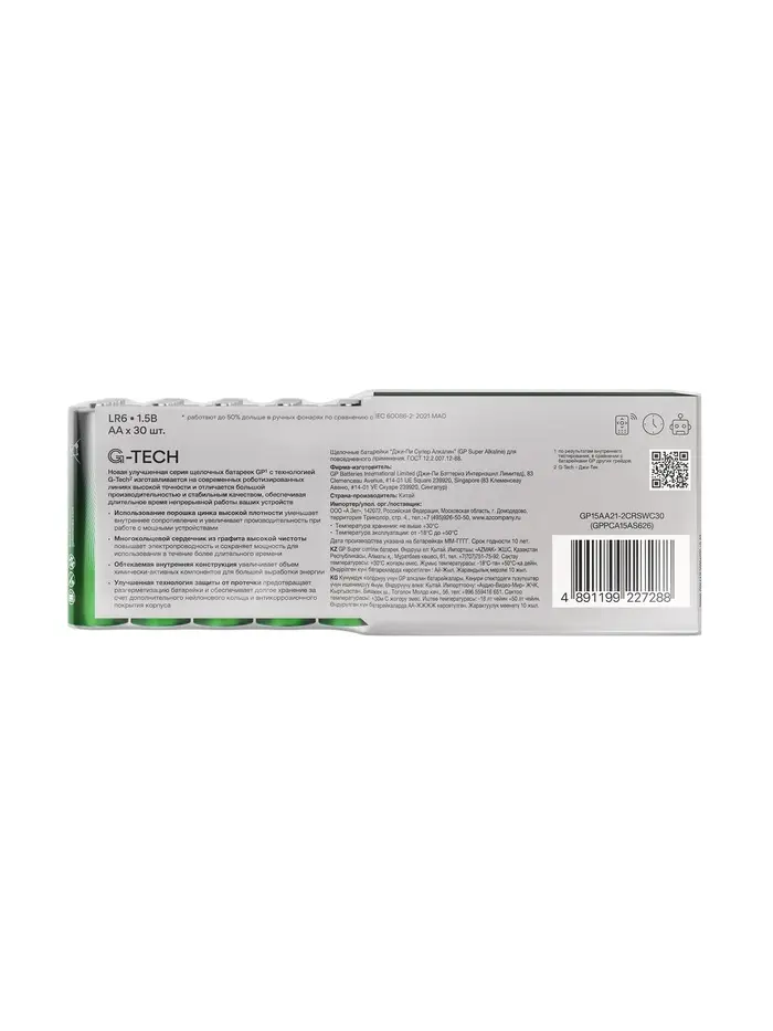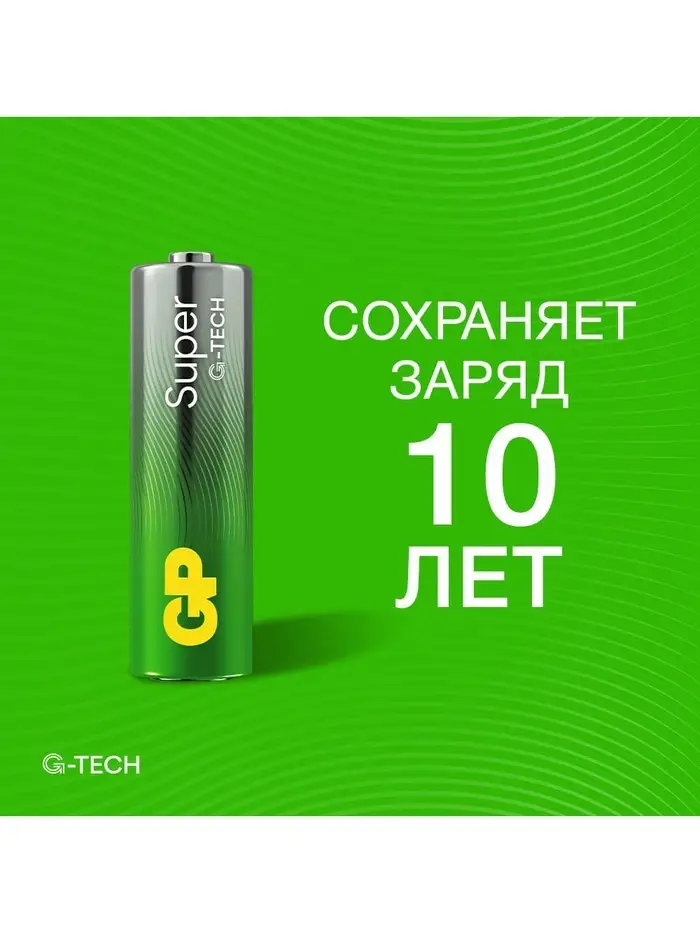 Новая линейка батареек GP Super Alkaline с технологией G-TECH, которая обеспечивает до 50%* больше мощности, позволяя вам наслаждаться использованием ваших устройств без перерывов. Технология G-TECH гарантирует длительное время службы ваших устройств. Благодаря использованию графита высокой чистоты и высококачественного порошка цинка S, батарейки обеспечивают высокую мощность и стабильное напряжение на протяжении продолжительного времени. Запатентованная система предотвращения протечек обеспечивает безопасность использования и защиту ваших устройств. Эти щелочные батарейки выделяются соотношением цены и качества и идеально подходят для повседневных устройств, таких как часы, пульты дистанционного управления и другие. Выберите батарейки GP Super Alkaline с технологией G-TECH для надежной работы ваших устройств.