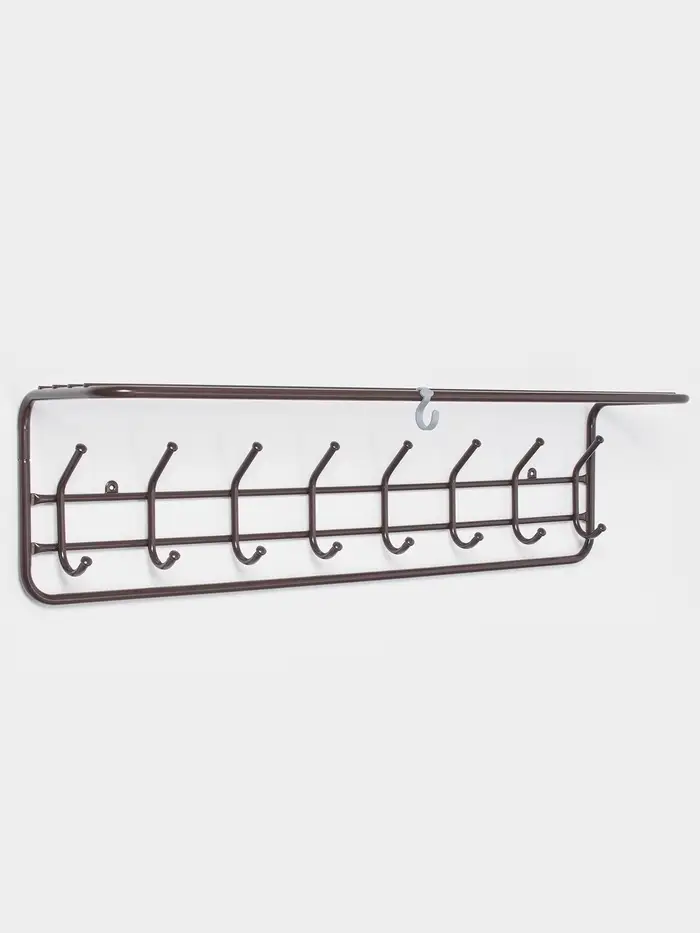 Вешалка настенная, с полкой, 8 крючков, 100 см, коричневая