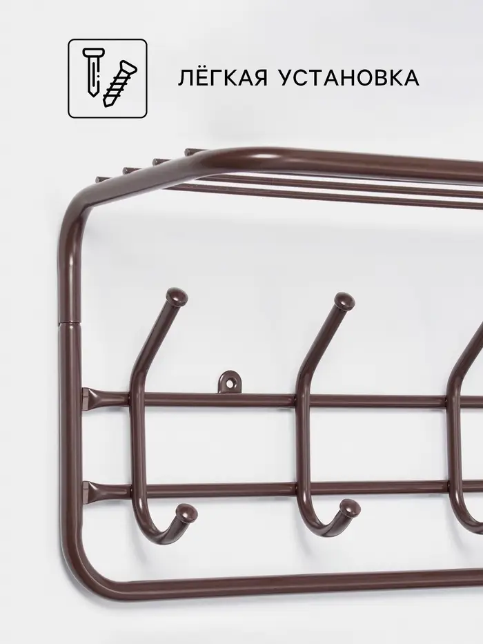 - Стильный дизайн: коричневый цвет и лаконичные линии придают вешалке элегантный вид, который легко интегрируется в любой интерьер.