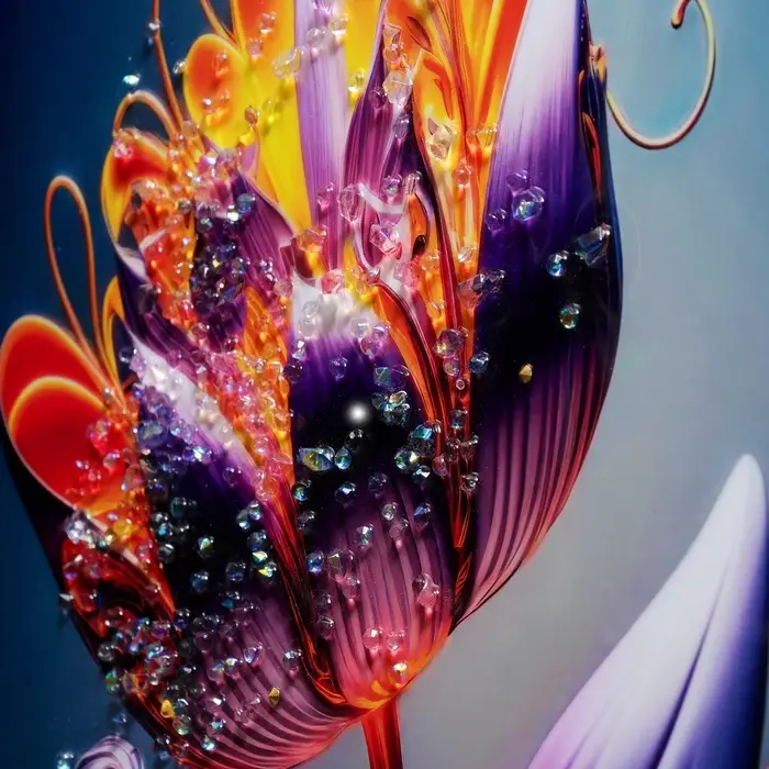- Выразительная абстракция: Художник создает динамичную композицию, где угадываются очертания бутонов и лепестков. Картина вызывает ассоциации с первыми весенними цветами, наполняя пространство ощущением легкости и обновления.