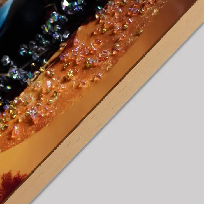 - Размер и визуальное воздействие: Холст 60×39.5 см — это вертикальный формат, который зрительно увеличивает высоту помещения. Картина не теряется на стене, приковывает внимание и становится смысловым центром комнаты.
