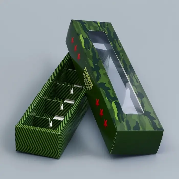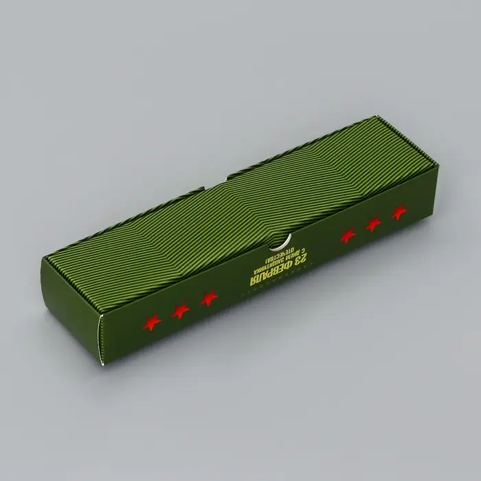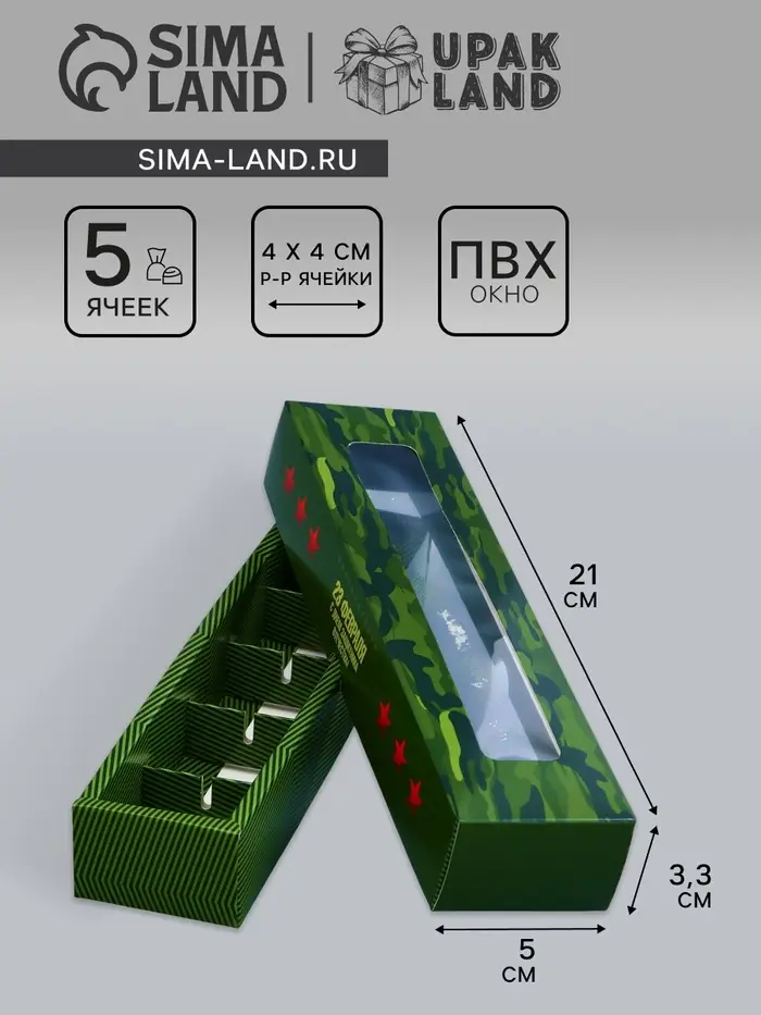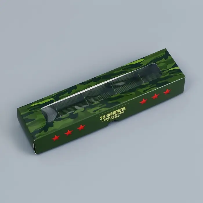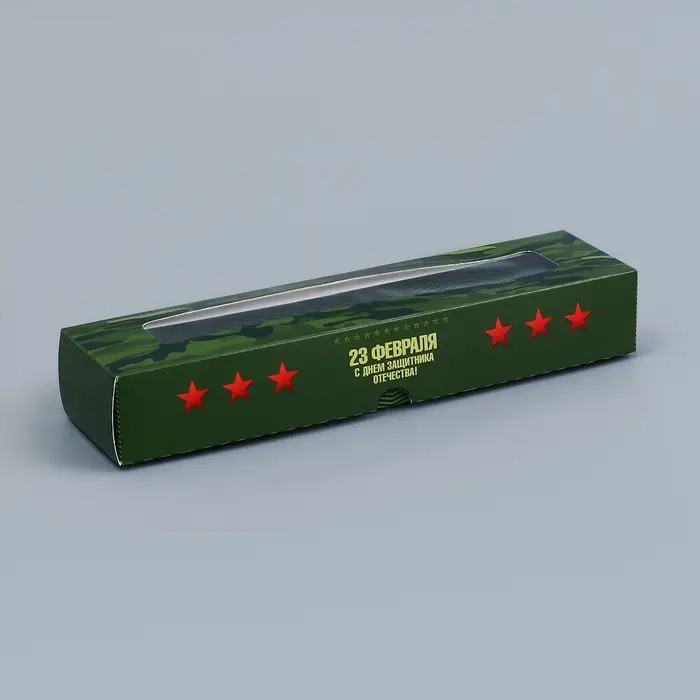 Коробка для 5 конфет с обечайкой, с окном «23 Февраля», 21×5×3.3 см