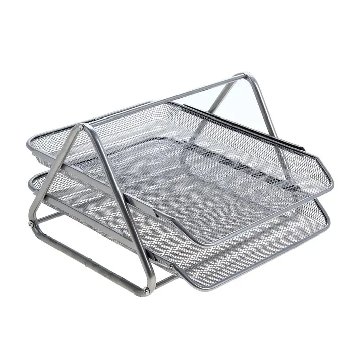 Лоток для бумаг горизонтальный, металлическая сетка, 2 отделения, серый
