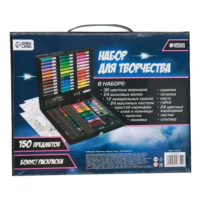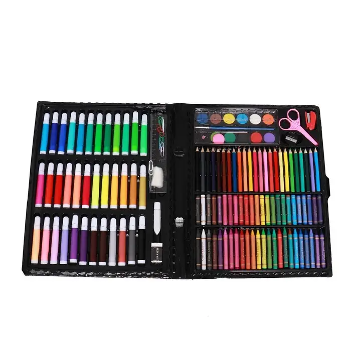 Такой набор станет настоящим подарком для художника. Рисуйте, создавайте шедевры с помощью маркеров, восковых мелков, красок и многого другого!