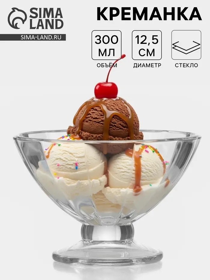 Креманка «Виктория», 300 мл, d=12.5 см, стекло, прозрачная