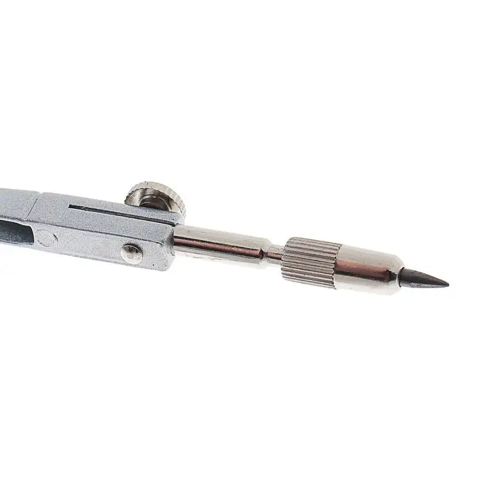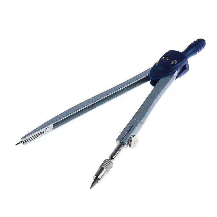 - Циркуль изготовлен из металла, что обеспечивает его устойчивость и точность при построении окружностей.