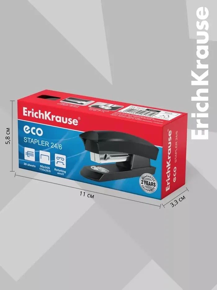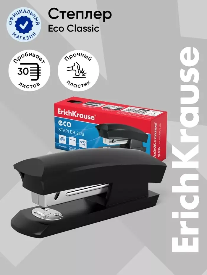 Степлер канцелярский № 10 ErichKrause ECO, до 20 листов, встроенный антистеплер, чёрный