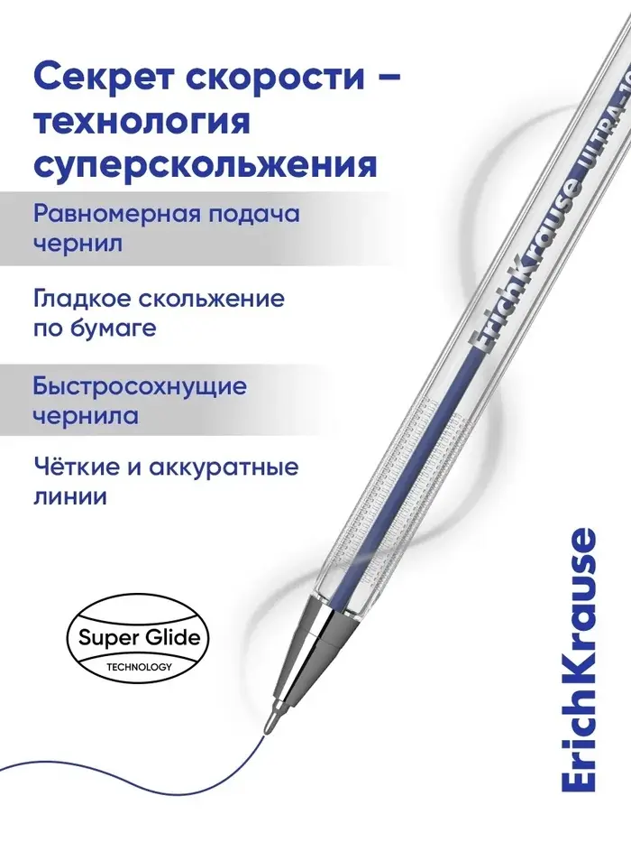 Ручка шариковая Erich Krause. ULTRA-10, синий стержень, игольчатый узел 0.7 мм