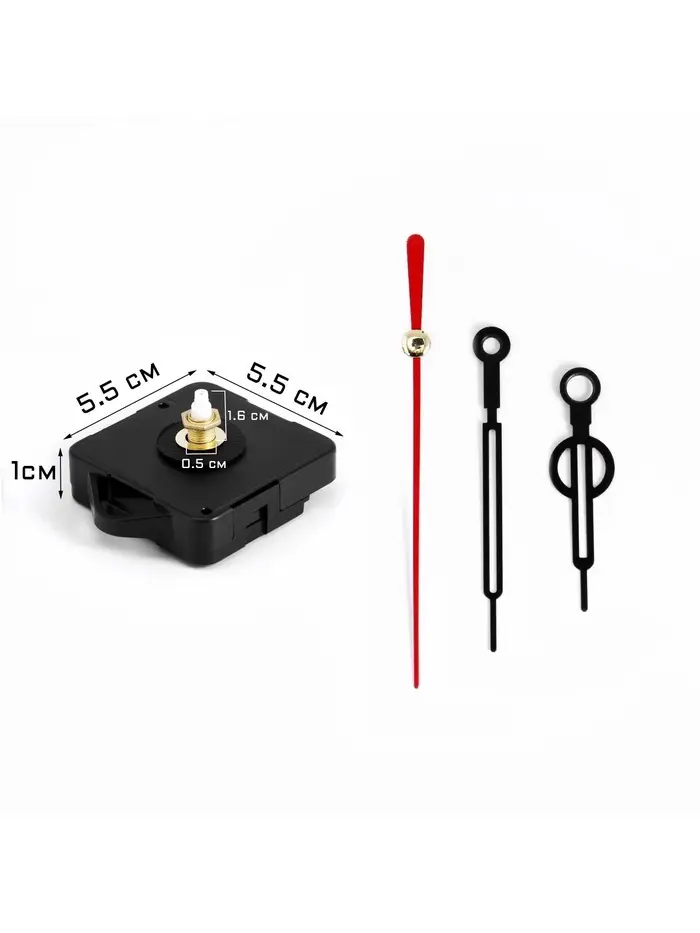 Чёрный и красный цвет стрелок подчёркивает стиль и элегантность, а сочетание металла и пластика гарантирует надёжность и долговечность механизма. Благодаря плавному ходу стрелок отсутствуют раздражающие тиканья, что делает этот механизм идеальным выбором для спальни, офиса или гостиной.