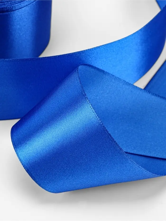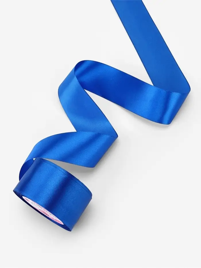 Синяя лента поможет воплотить самые смелые идеи в жизнь. Её благородный оттенок сочетается с широким спектром палитры и может стать центральным элементом в украшениях или гармоничным дополнением к другим цветам. Примените её в оформлении столов, венков, букетов и обнаружьте, как легко она придаёт шарм и утончённость любому проекту.