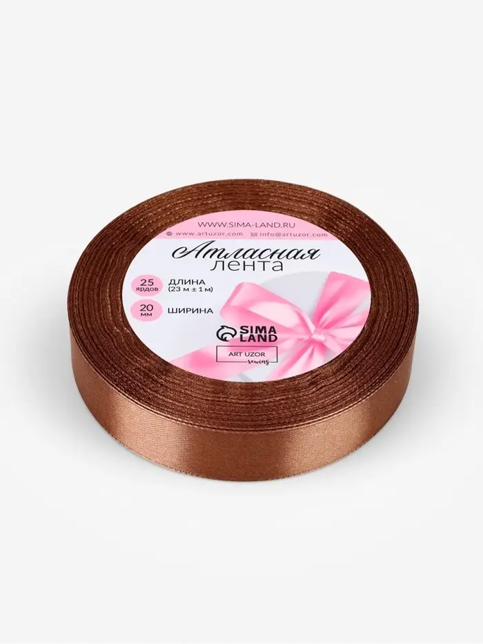Лента атласная, 20 мм, 23±1 м, коричневая №142