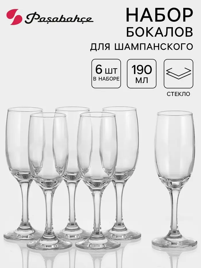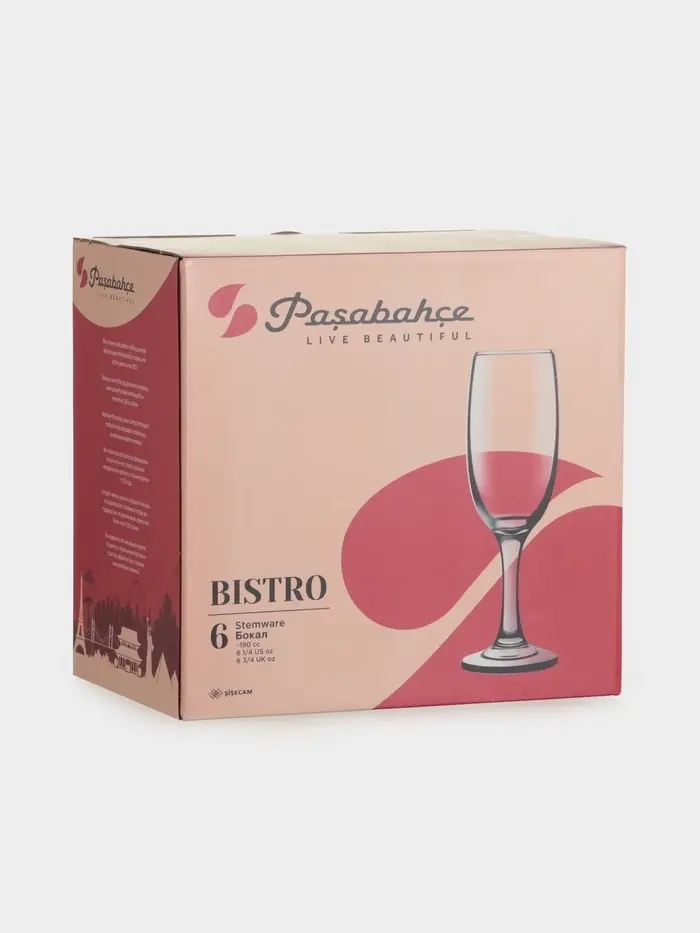 Набор бокалов для шампанского Paşabahçe Bistro, 190 мл, 6 шт., стекло, прозрачный
