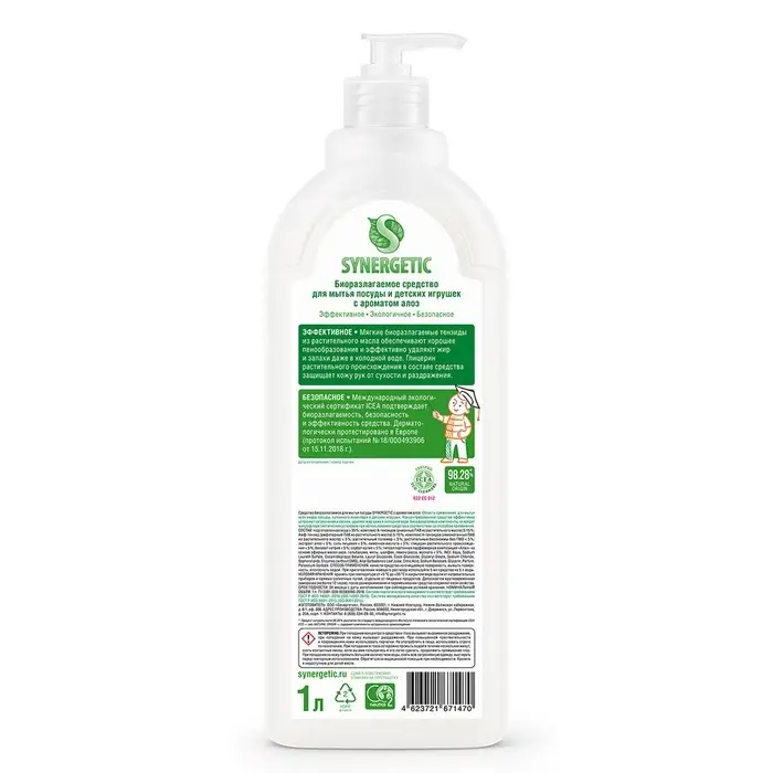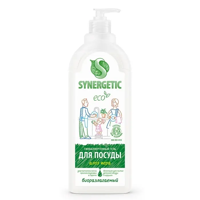 Средство для мытья посуды Synergetic, антибактериальный гель с алоэ вера, 1 л — чистота, безопасность и забота о коже