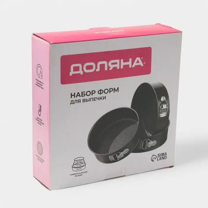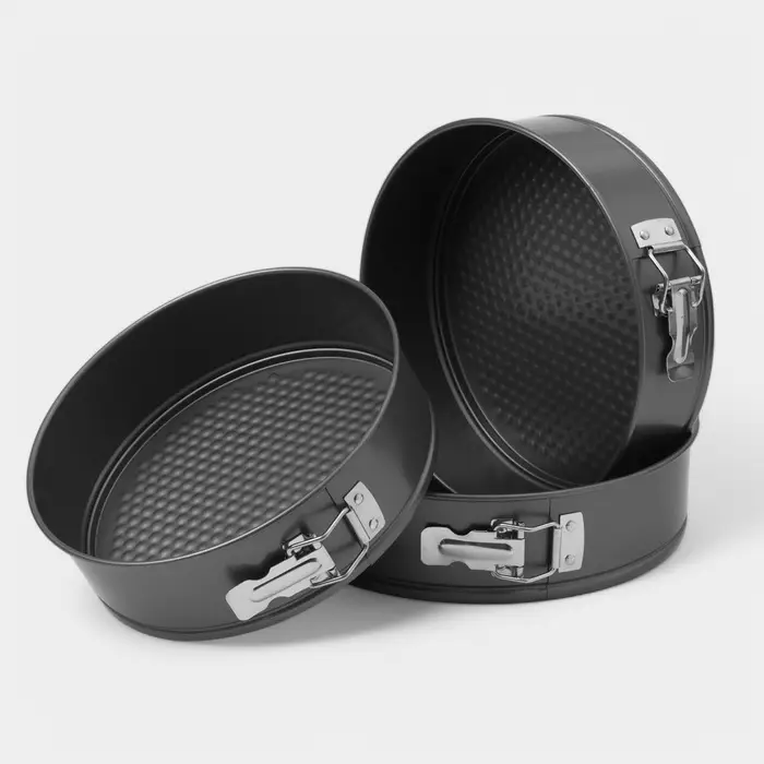 Набор форм для выпечки Доляна «Элин. Круг», 3 предмета: d=22/24/26 см, съёмное дно, антипригарное покрытие, чёрный