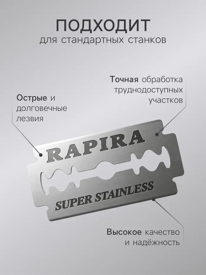 Лезвия Rapira Classic изготавливаются из высококачественной стали шведской фирмы Sandvik. Их режущая кромка покрыта хромом и тефлоном: это обеспечивает максимально комфортное, лёгкое и приятное бритьё.